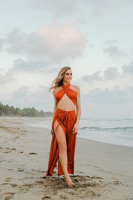 Salida de playa dama pantalón envolvente aria rust