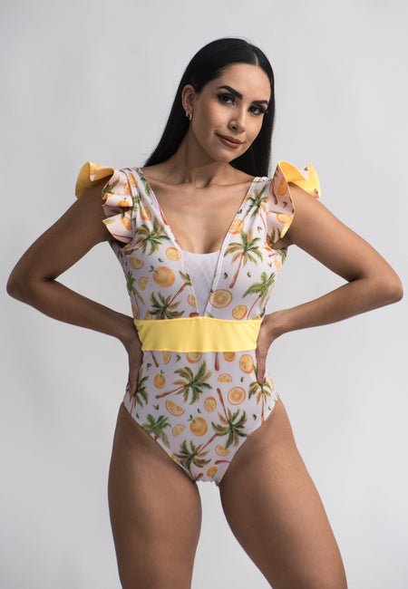 One-piece asymmetrical lady swimsuit Quetzal Chiffon