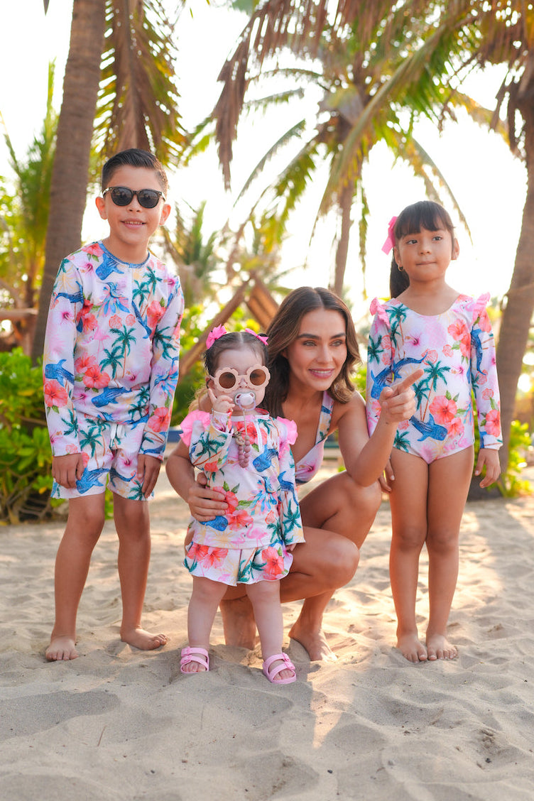 Girl's swimsuit, one piece, tropical loteria multicolor
