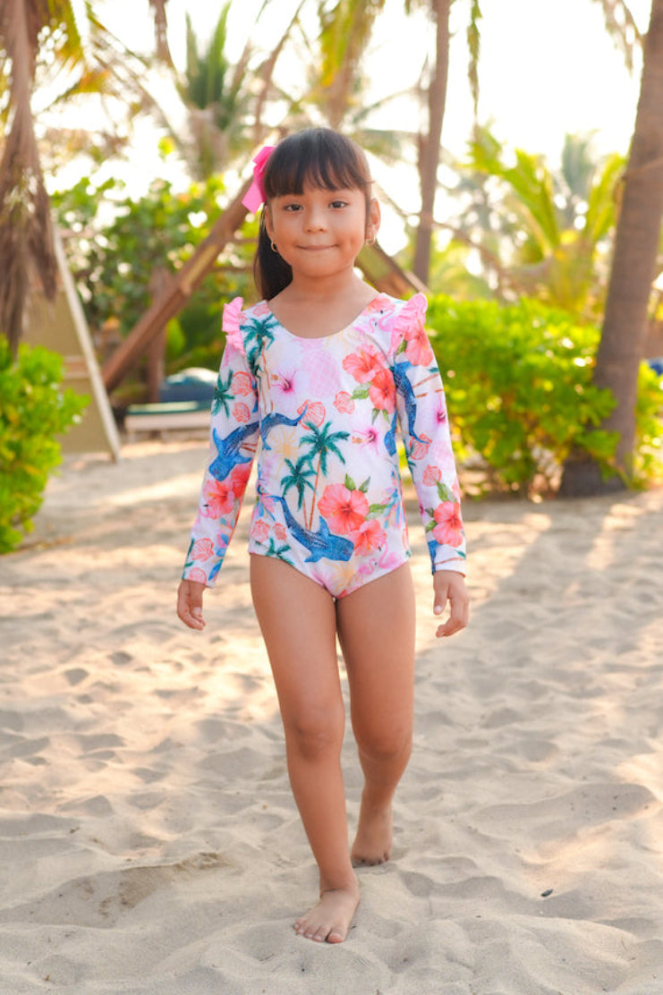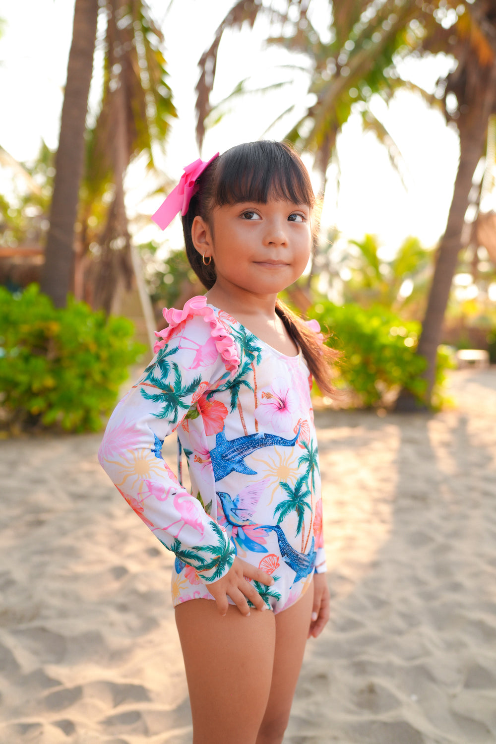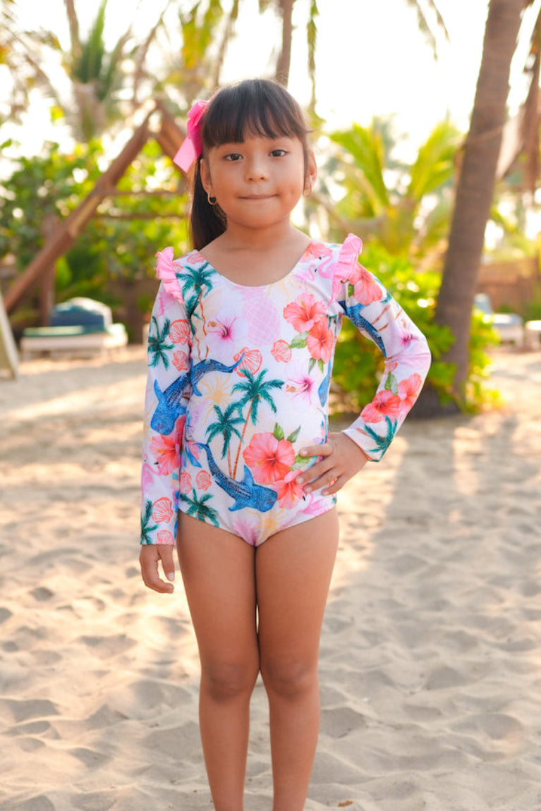 Girl's swimsuit, one piece, tropical loteria multicolor